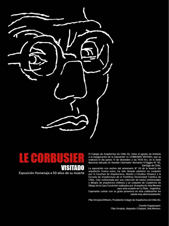El Colegio de Arquitectos de Chile lo invita a la inauguración de la exposición LE CORBUSIER VISITADO. La exposición con motivo del aniversario N°50 de la muerte del arquitecto franco-suizo, ha sido llevada adelante por la Facultad de Arquitectura, Diseño y Estudios Urbanos de la Pontificia Universidad Católica de Chile.