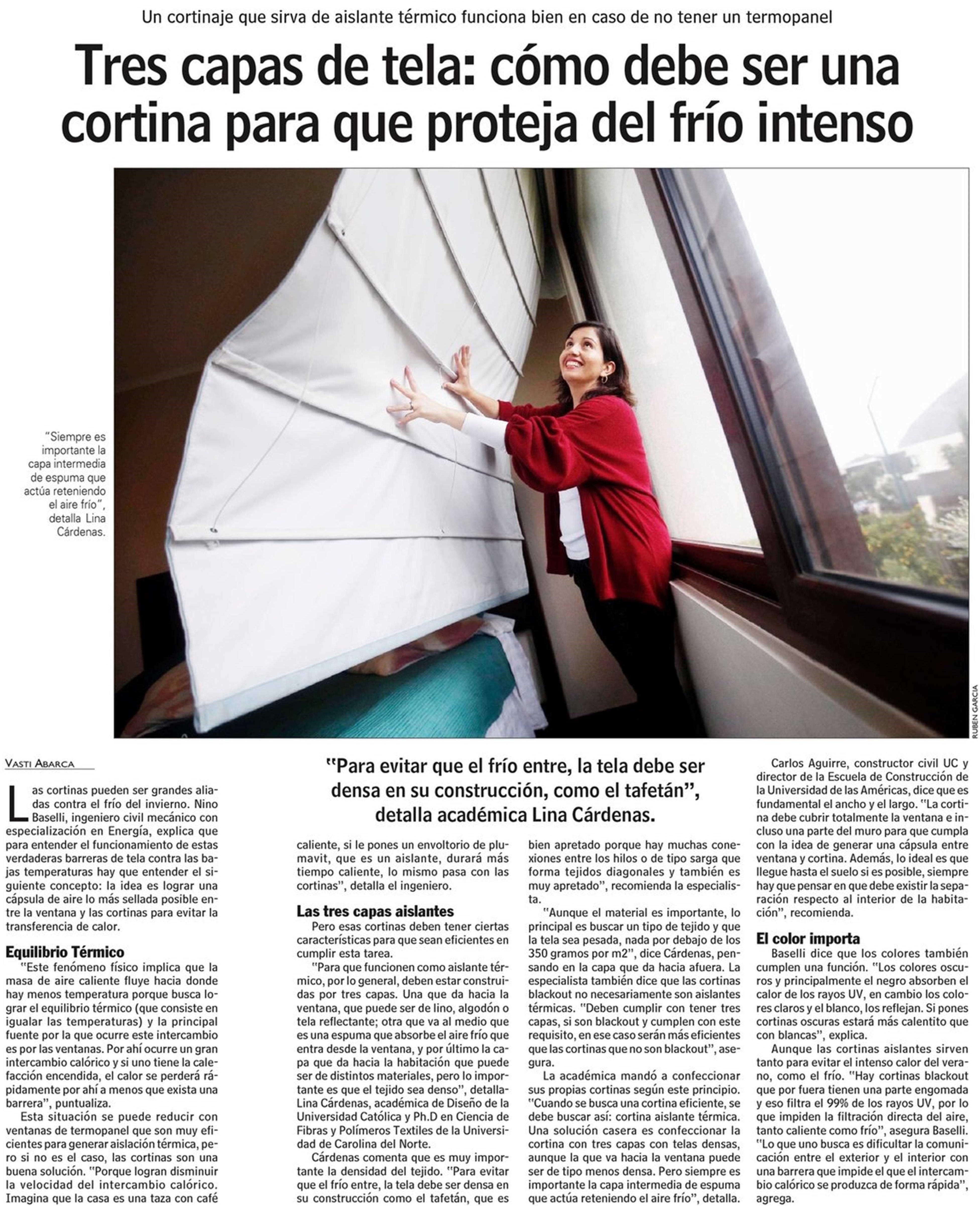 Las Últimas Noticias destaca cómo debe ser una cortina para que sirva de aislante térmico. Habla la profesora de la Escuela de Diseño, Lina Cárdenas.