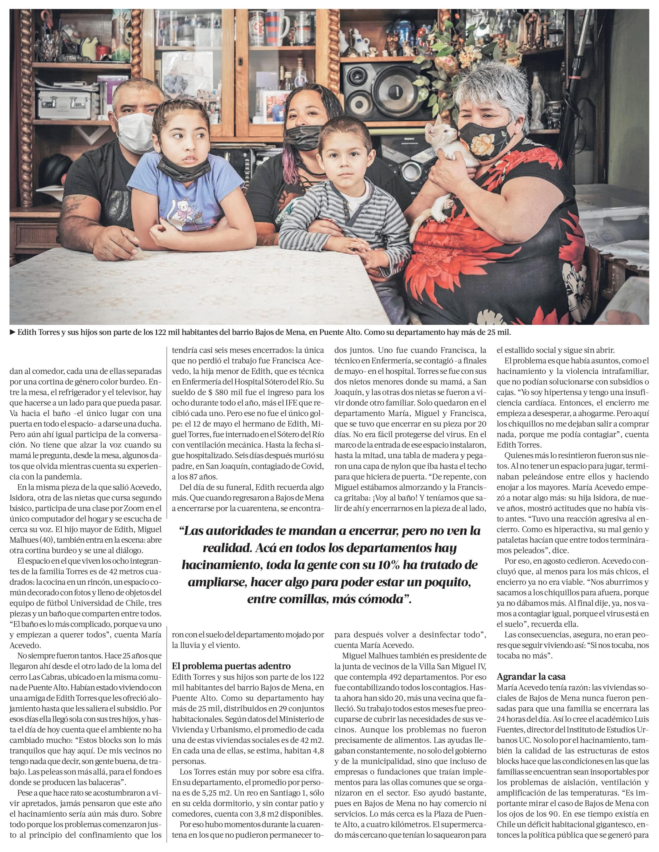 La Tercera destaca cómo vive el encierro una familia en 42 m2. Habla el académico Luis Fuentes, director del instituto de Estudios Urbanos.