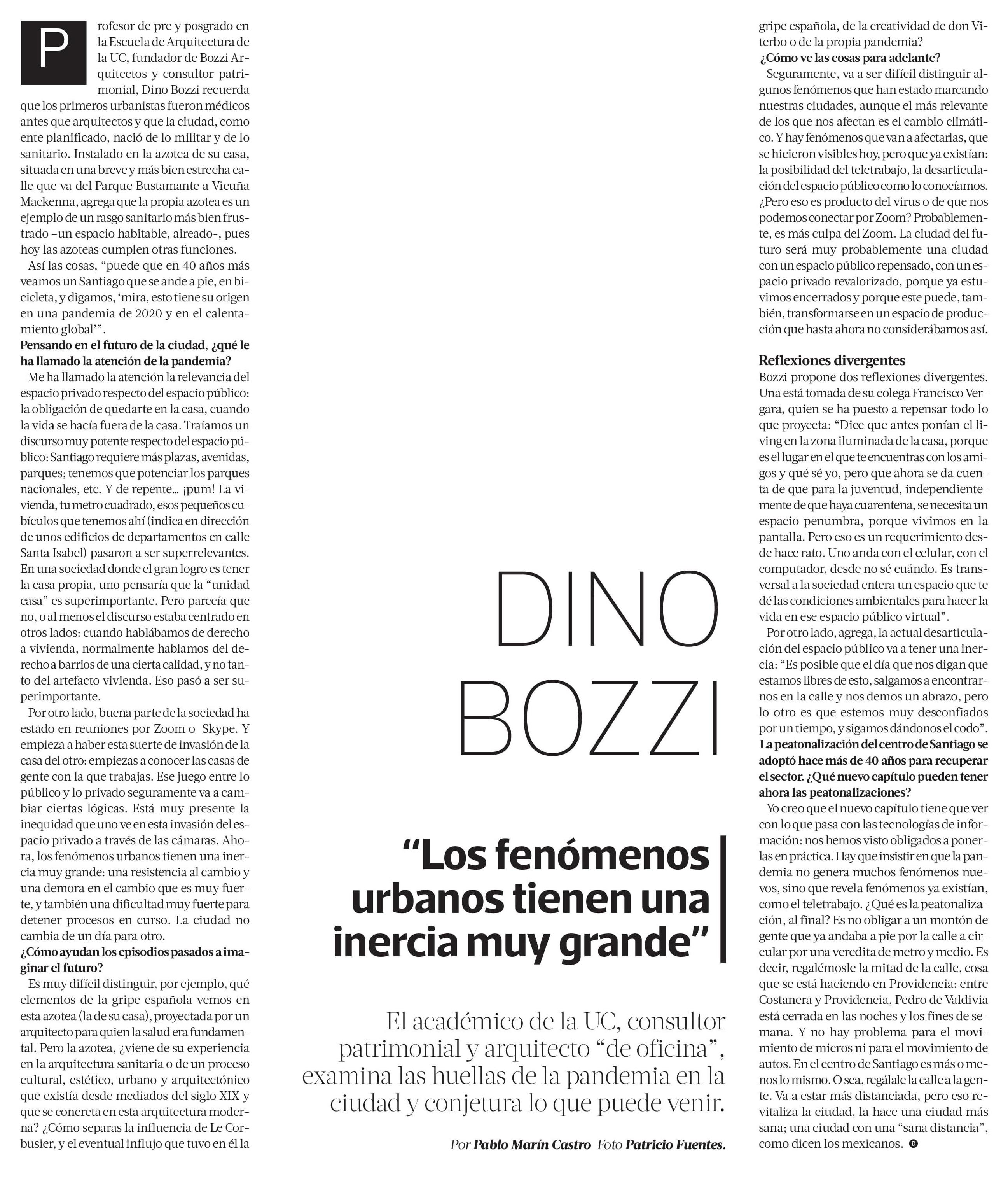 La Tercera entrevista al académico de la Escuela de Arquitectura Dino Bozzi sobre las huellas de la pandemia en la ciudad y las zonas urbanas del futuro.