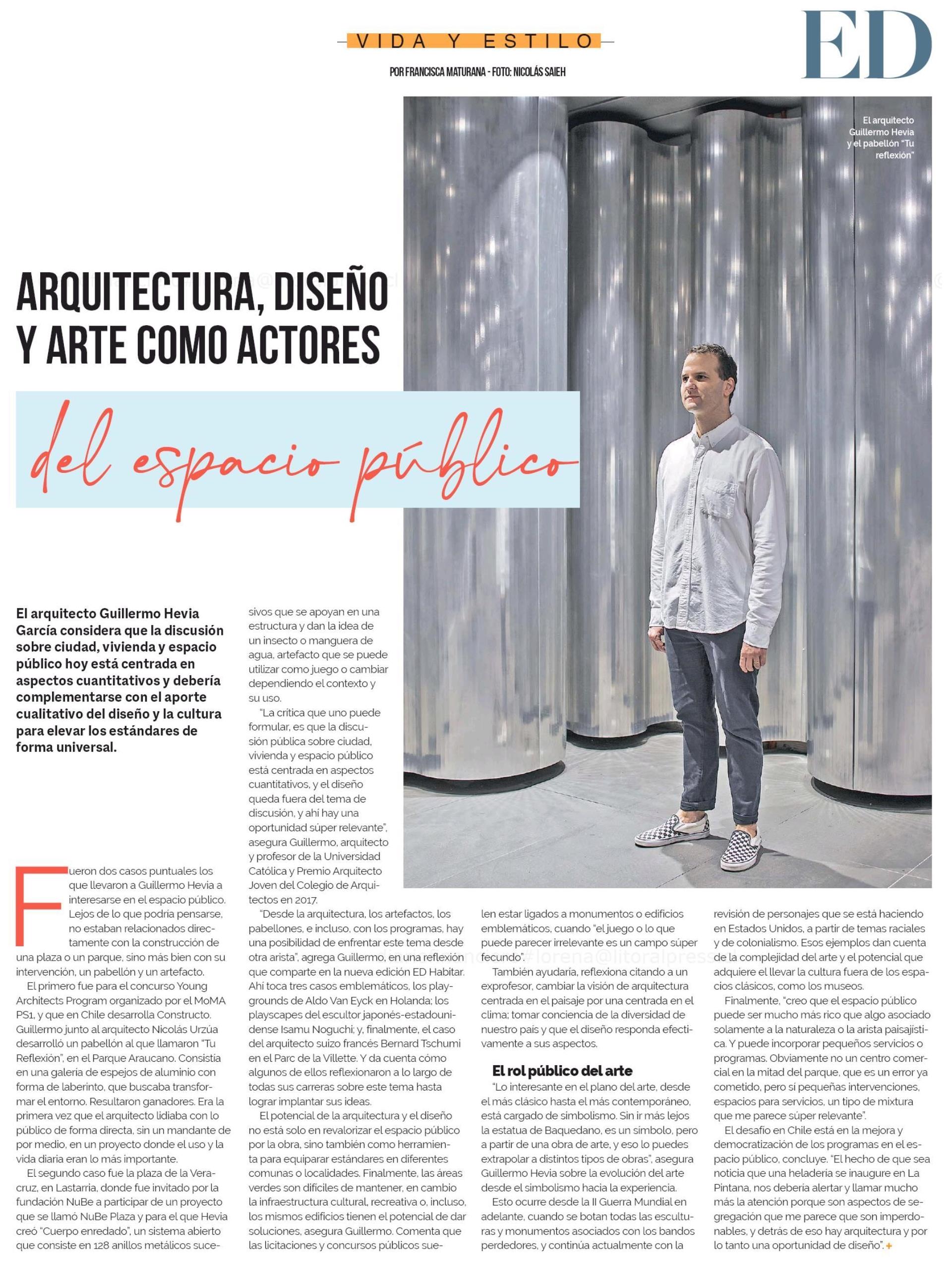 Arquitectura, y arte como actores del espacio público Detalles 11 Enero 2022 Visto: 513 Tweet Diario Financiero entrevista al profesor Guillermo Hevia acerca de la discusión sobre ciudad, vivienda y espacio público. + Revisa nota completa aquí.