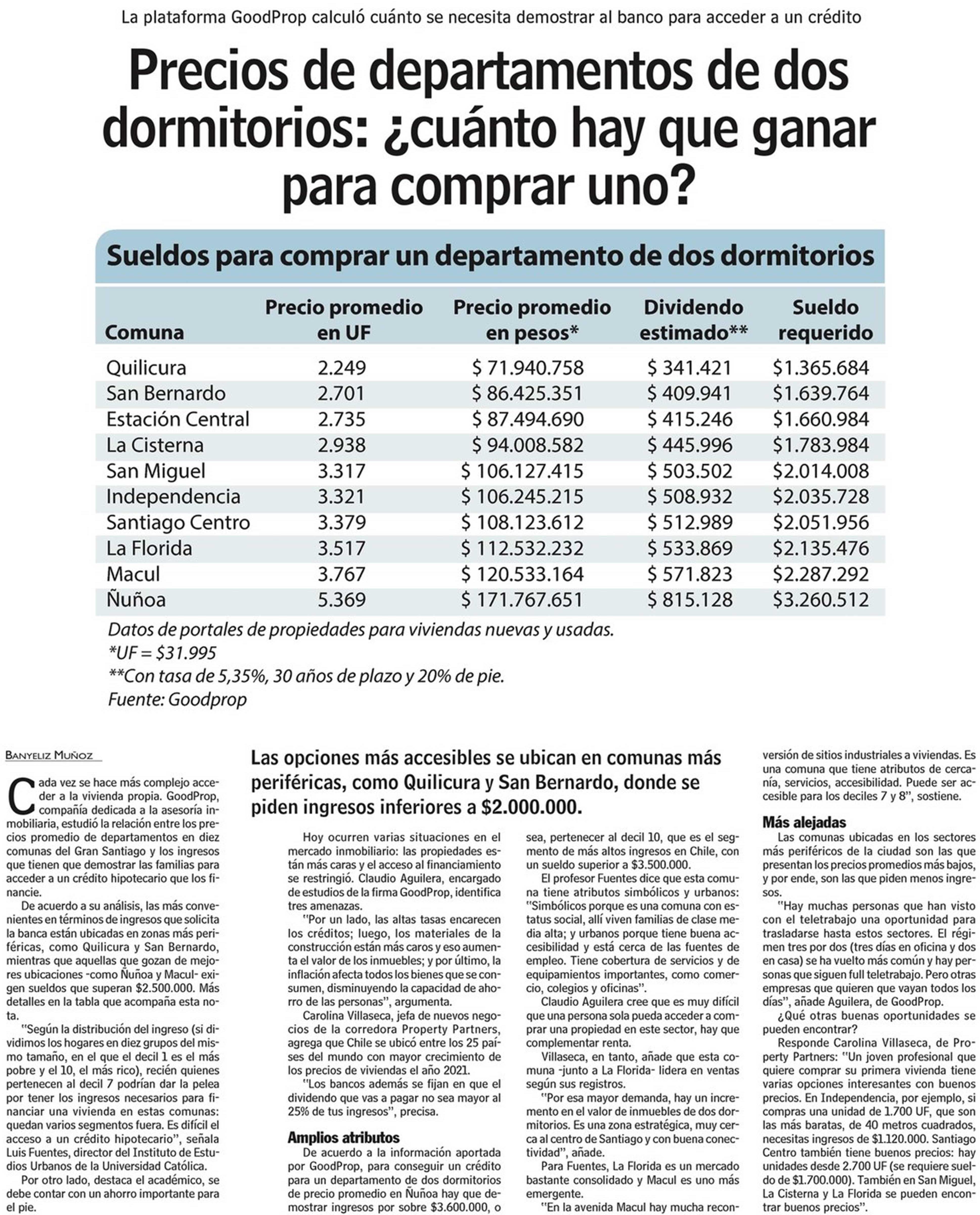 Las Últimas Noticias destaca que plataforma dedicada a la asesoría inmobiliaria estudió la relación entre los precios promedio de departamentos en diez comunas del Gran Santiago y los ingresos que tienen que demostrar las familias para acceder a un crédito hipotecario que los financie. Habla el profesor Luis Fuentes, director del IEUT.