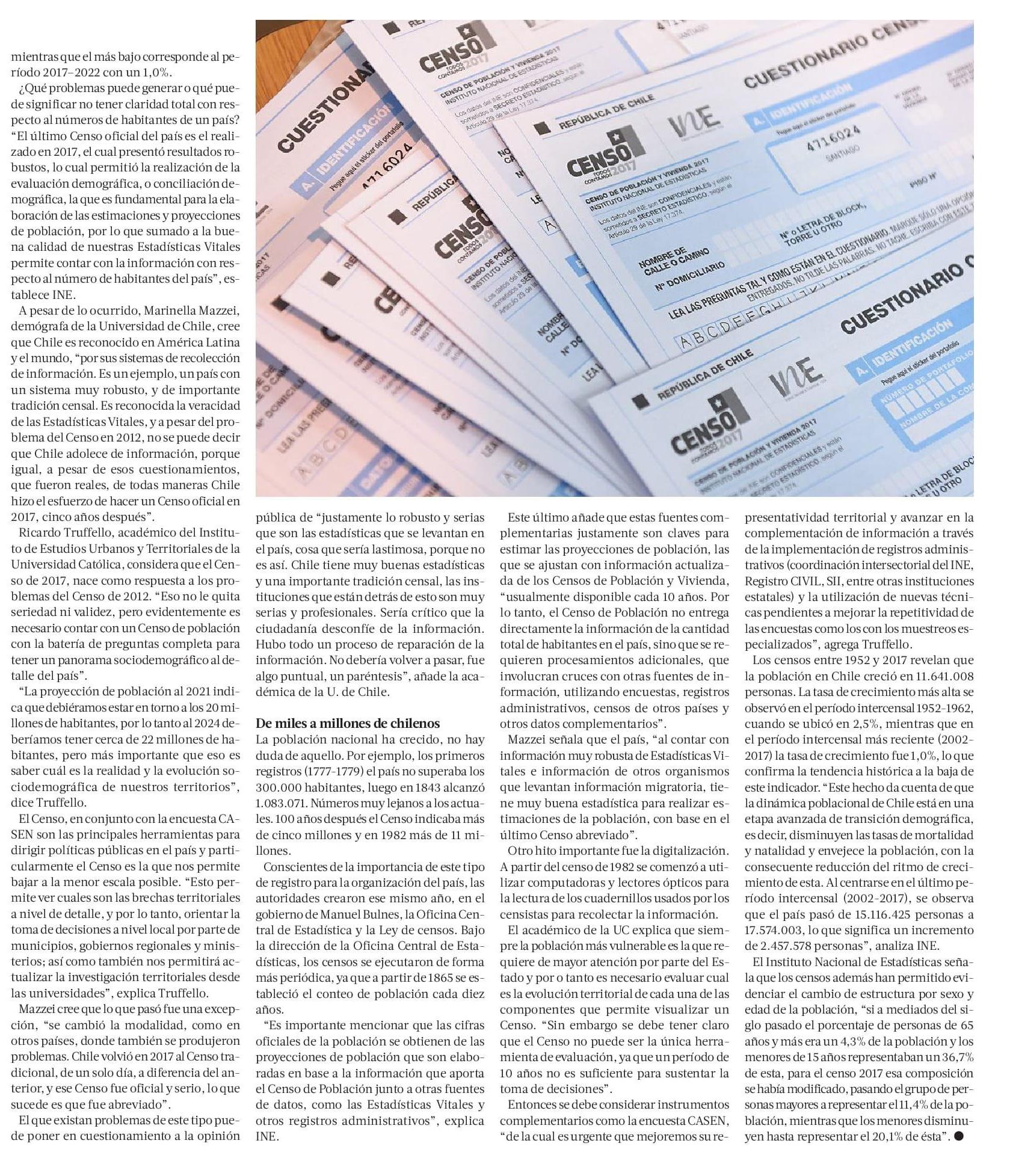La Tercera destaca que se cumplen 70 años del primer Censo Nacional de Población y Vivienda y los problemas en su implementación que han tenido los últimos procesos. Habla el académico Ricardo Truffello.