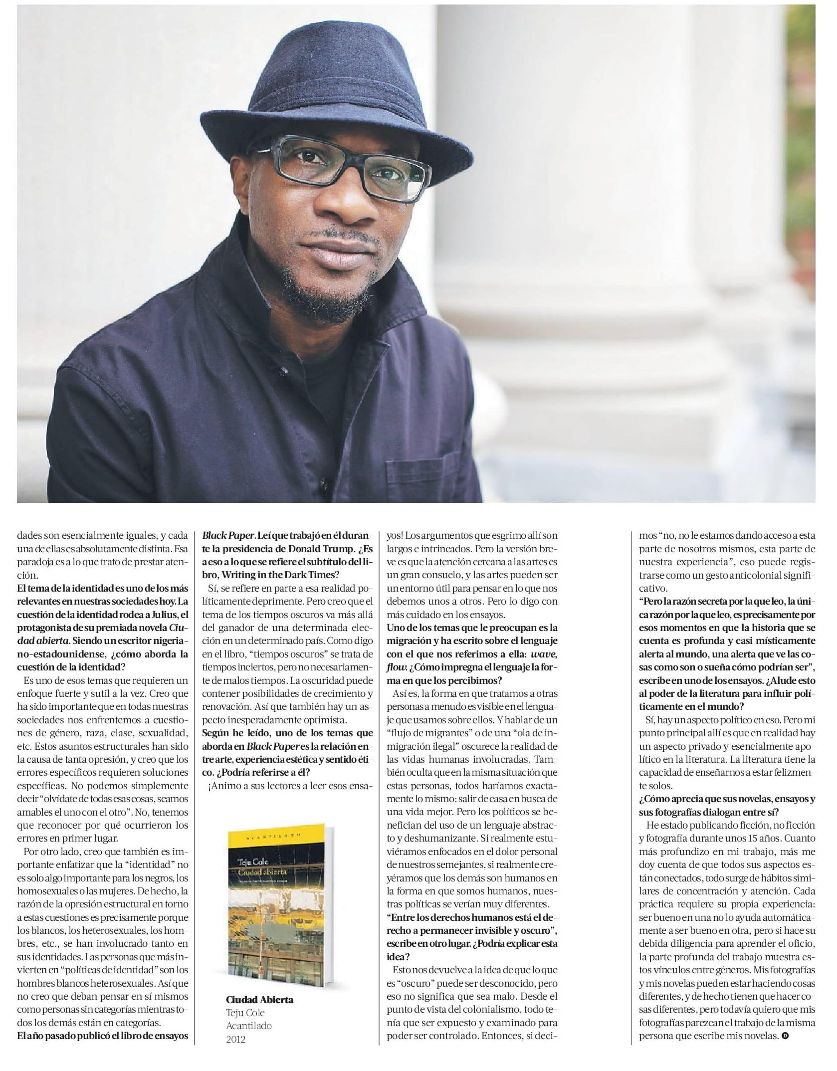 La Tercera entrevista a Teju Cole, novelista, ensayista y fotógrafo que ofrecerá una conferencia el próximo jueves en el marco del ciclo La Ciudad y las Palabras de la UC.