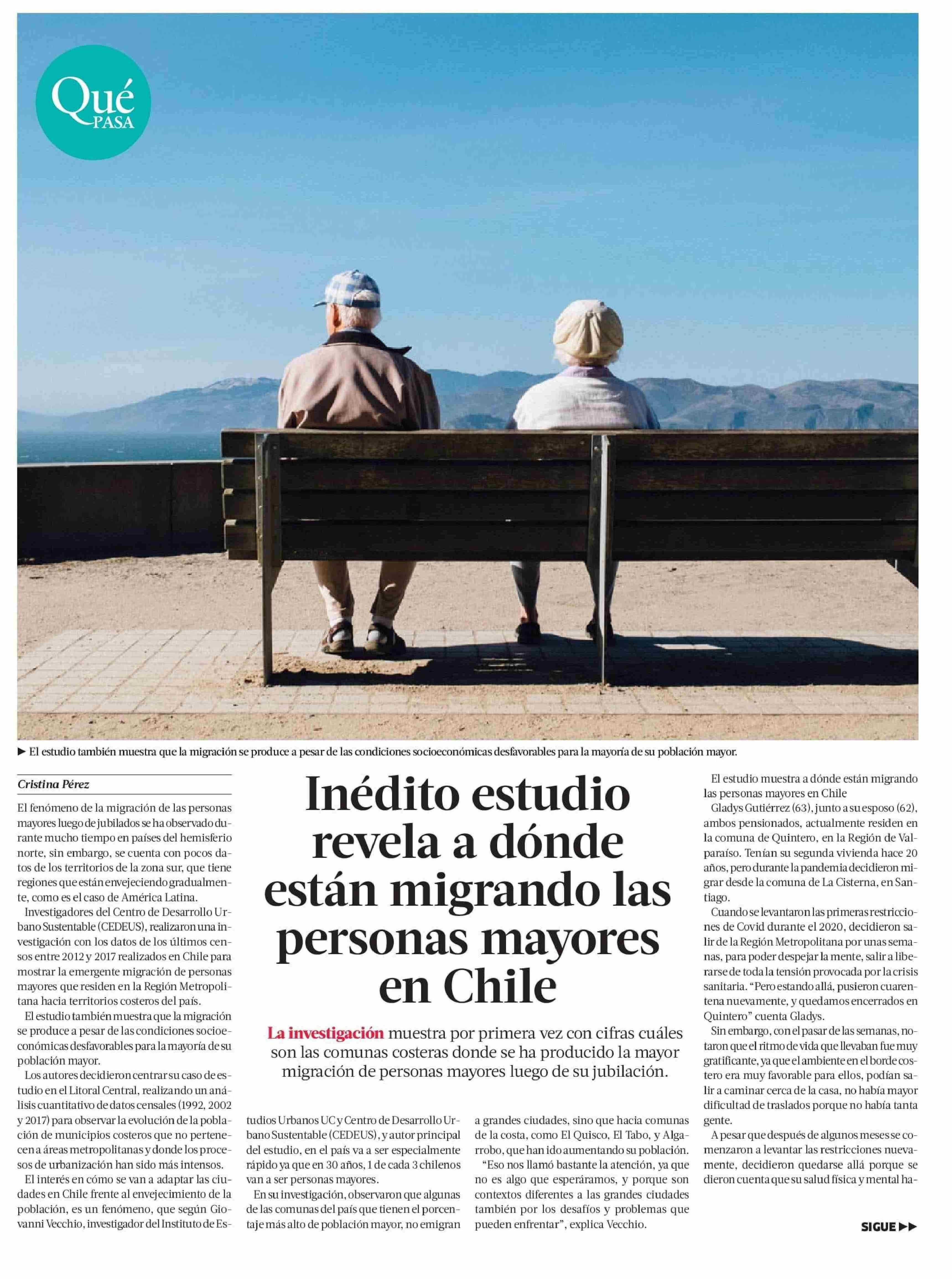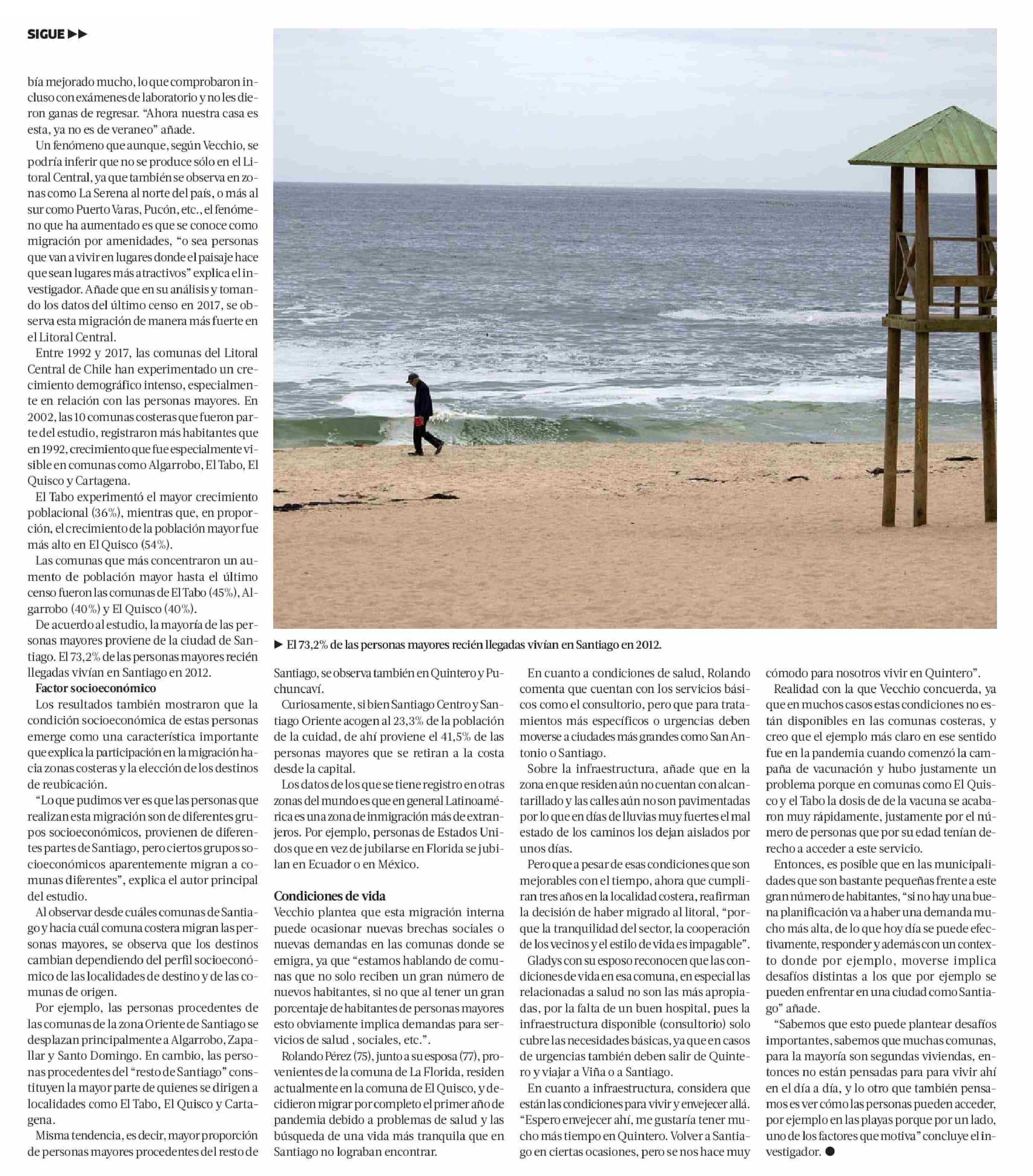 La Tercera destaca estudio del centro que muestra cuáles son las comunas costeras donde se ha producido la mayor migración de personas mayores luego de su jubilación. Habla Giovanni Vecchio, académico del Instituto de Estudios Urbanos y Territoriales UC, investigador del Cedeus y autor principal de la investigación.