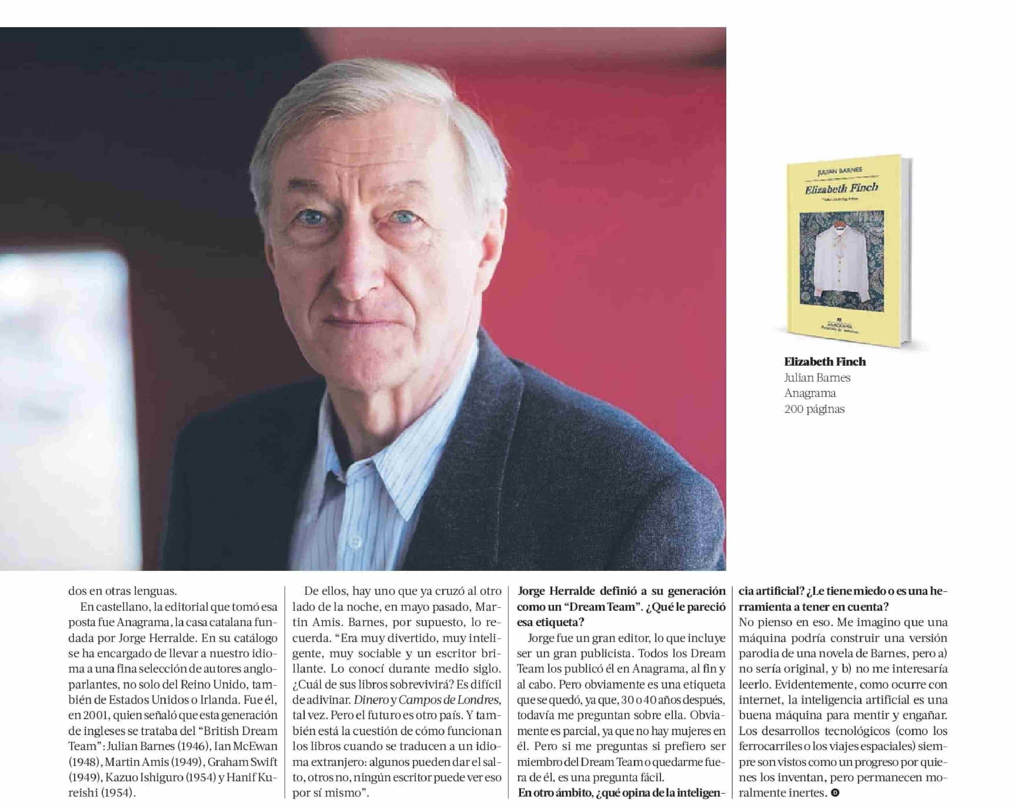 La Tercera entrevista al autor británico Julian Barnes sobre su última novela Elizabeth Finch y sobre sus recuerdos de la generación de que fue parte, el "British Dream Team". Se menciona su visita a Chile en 2008, invitado por el ciclo La ciudad y las palabras de la UC.