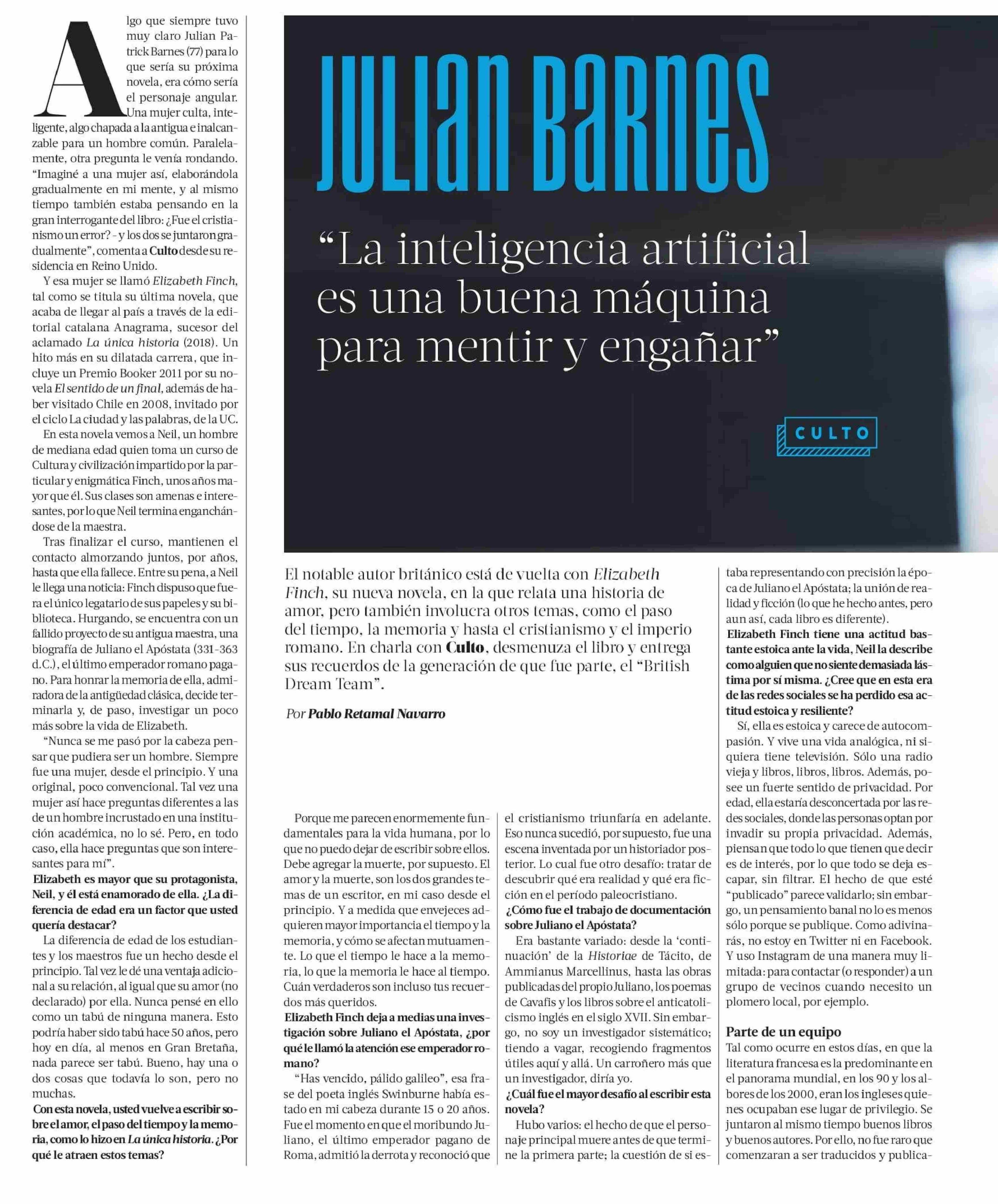 PRENSA I Julian Barnes “La inteligencia artificial es una buena máquina para mentir y engañar”