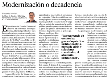 La Segunda publica columna del académico del Instituto de Estudios Urbanos, Roberto Moris: "M...