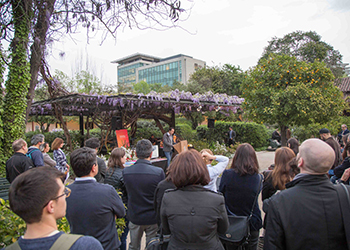 En el Patio de los Naranjos de la Facultad de Arquitectura, Diseño y Estudios Urbanos de la U...
