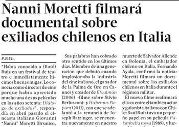 Por P.B. Ch. La Tercera.Diario La Tercera destaca que el cineasta Nanni Moretti filmará docum...
