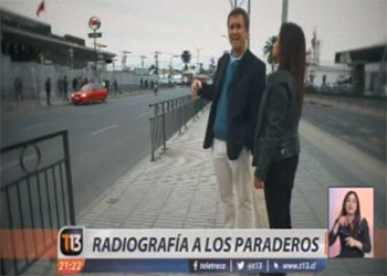 Por canal 13 Nota en canal 13 sobre estado de los paraderos de la locomoción colectiva incluye ent...