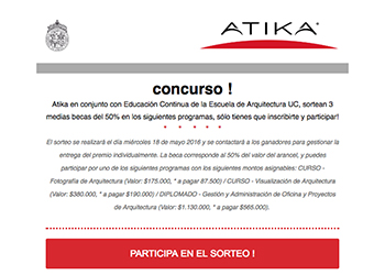 Atika en conjunto con Educación Continua de la Escuela de Arquitectura UC sortean 3 becas de 50% en...