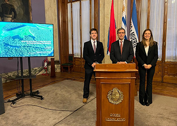 Los profesores ARQ UC Juan José Ugarte y Andrés Sierra —junto a la arquitecta UC...